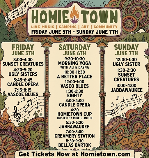 Looking ahead to 2026, we’re going bigger than ever—three days of live music, camping, and all the love, energy, and good vibes that make Homie Town what it is. This isn’t just a festival—it’s a family, a tradition, and a reminder of why we come together.